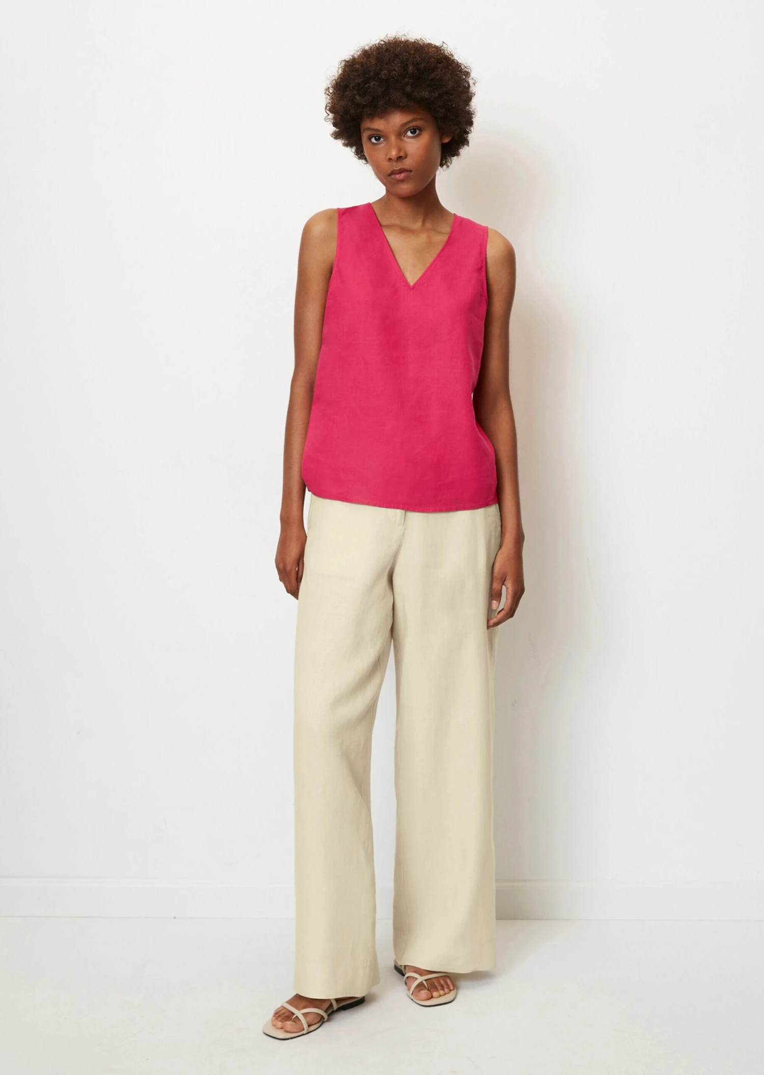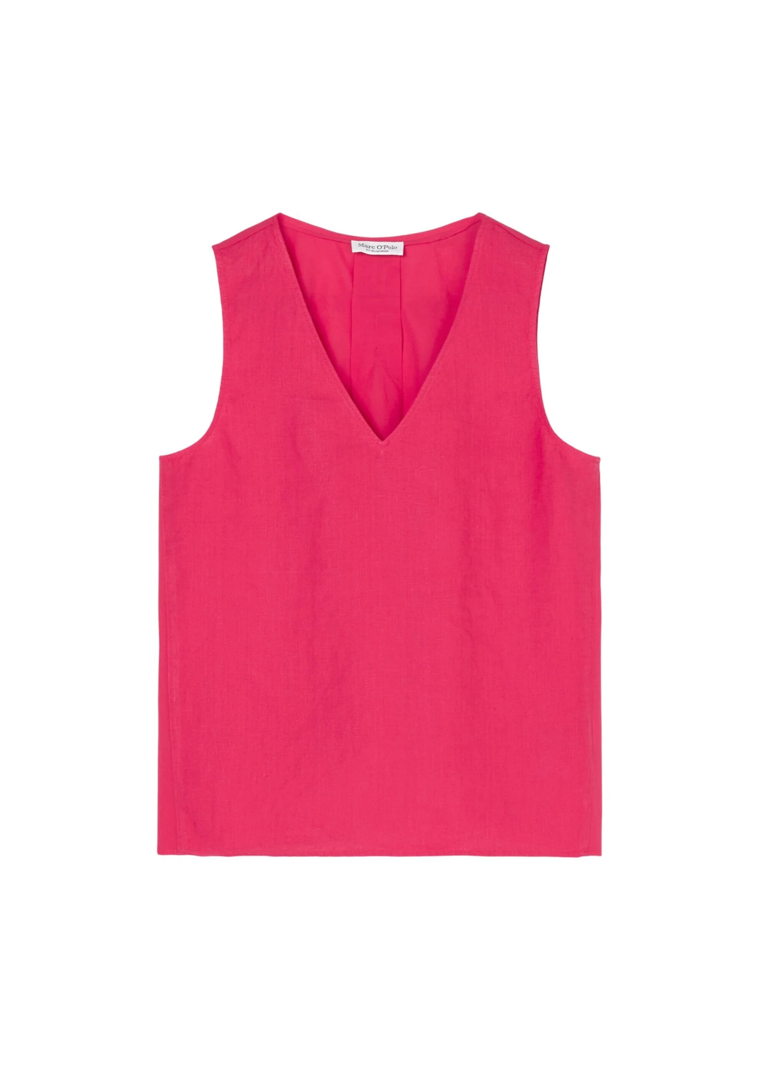 The natural, cooling and breathable properties of linen make this material exceptionally pleasant to wear in summery temperatures. Super casual, wide-cut, sleeveless blouse top with a V-neck, side seams offset to the front, stand-out pleat on the back and a round hemline. Special: the high-quality material mix – the back is made of lightweight cotton-voile fabric.