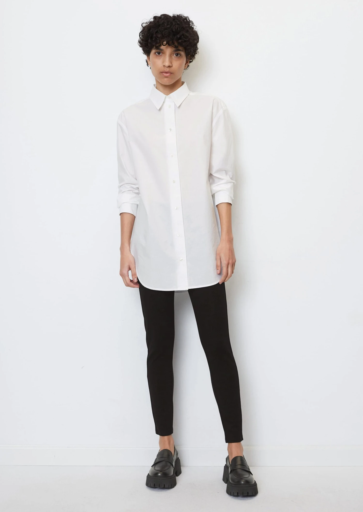 The casual oversized shirt – otherwise known as the boyfriend shirt – is THE fashion trend of the season It looks like you swiped it straight from your sweetheart’s wardrobe. This piece is great for mixing and matching and is made of pure organic cotton fabric with a modern paper-like texture. It features a classic Kent collar, dropped shoulders, characteristic sleeves and a distinctive rounded hemline. Genuine mother-of-pearl buttons add an exclusive finishing touch.