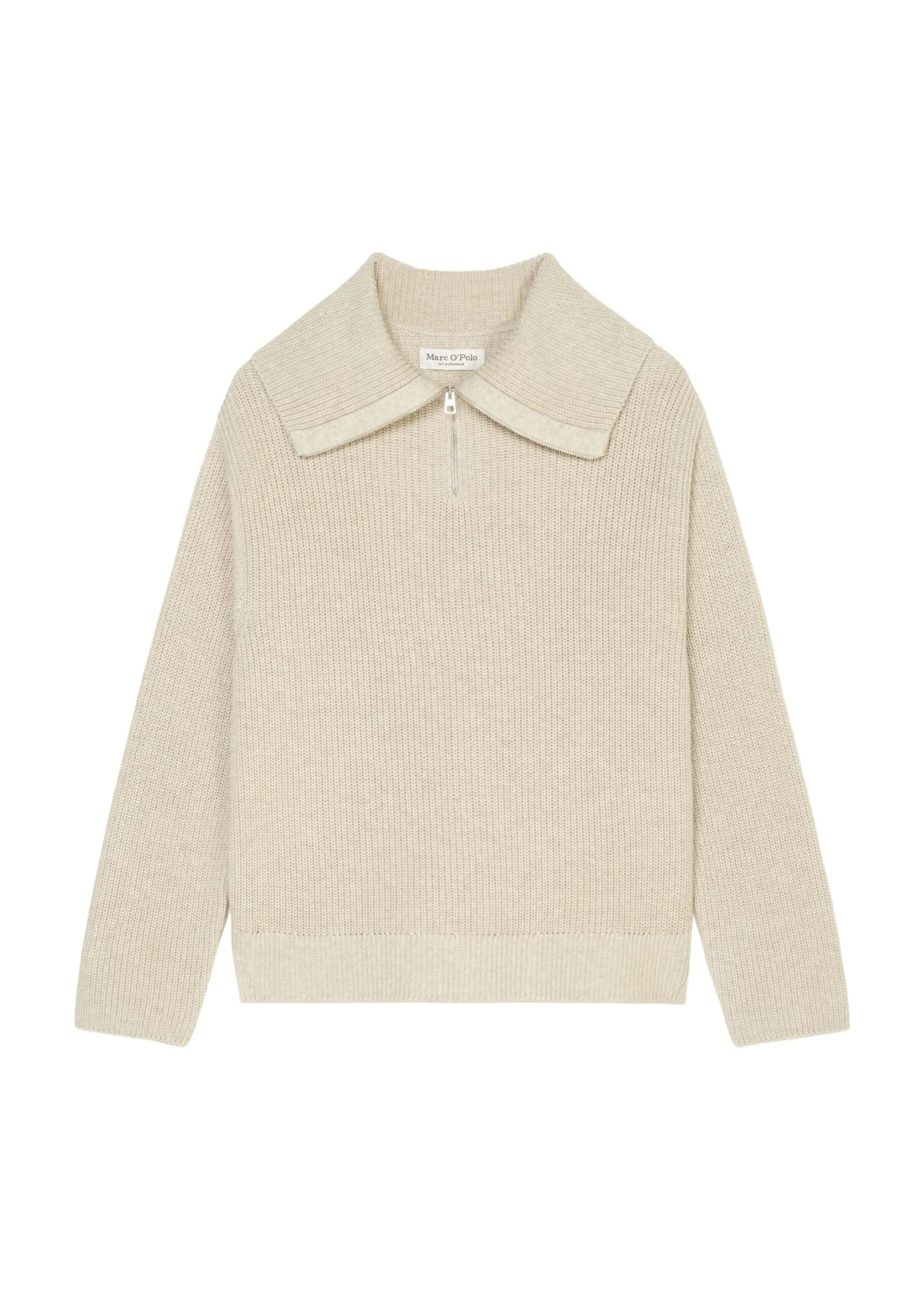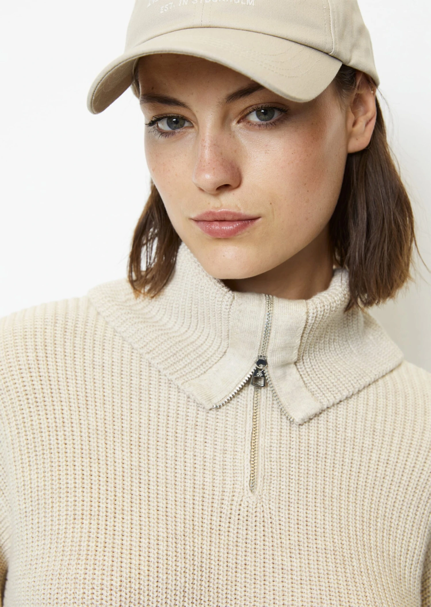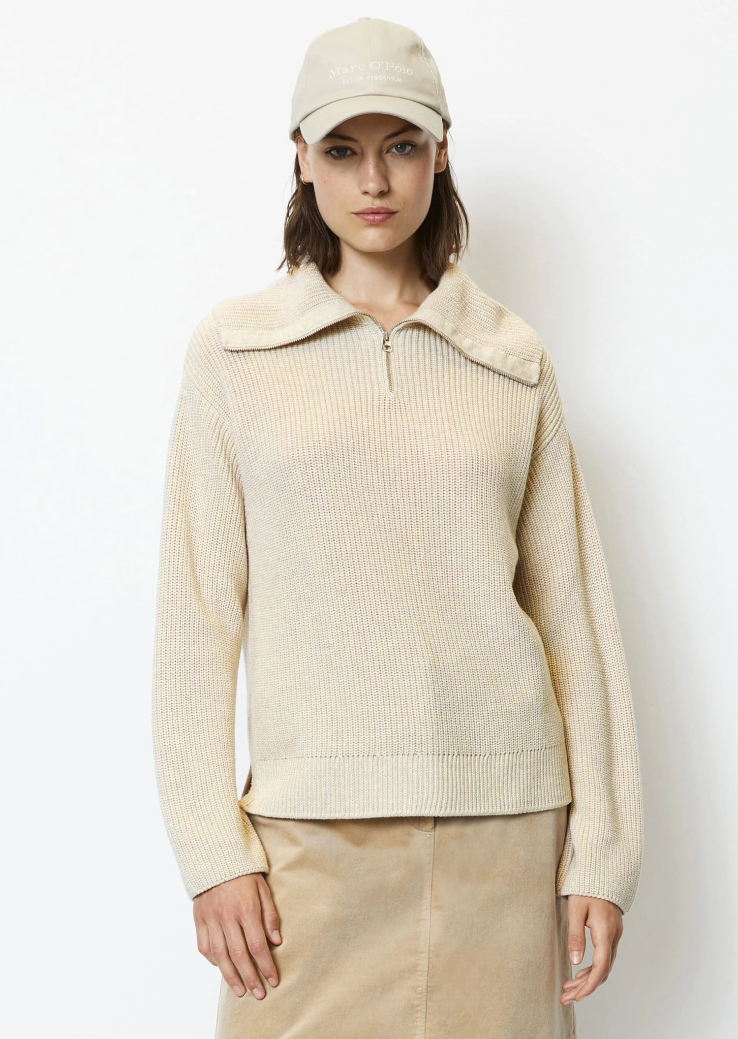 Marc O’Polo Cropped Knitted Zip-neck Jumper In A Loose Fit In A Cool Mix Of Textures And Colours