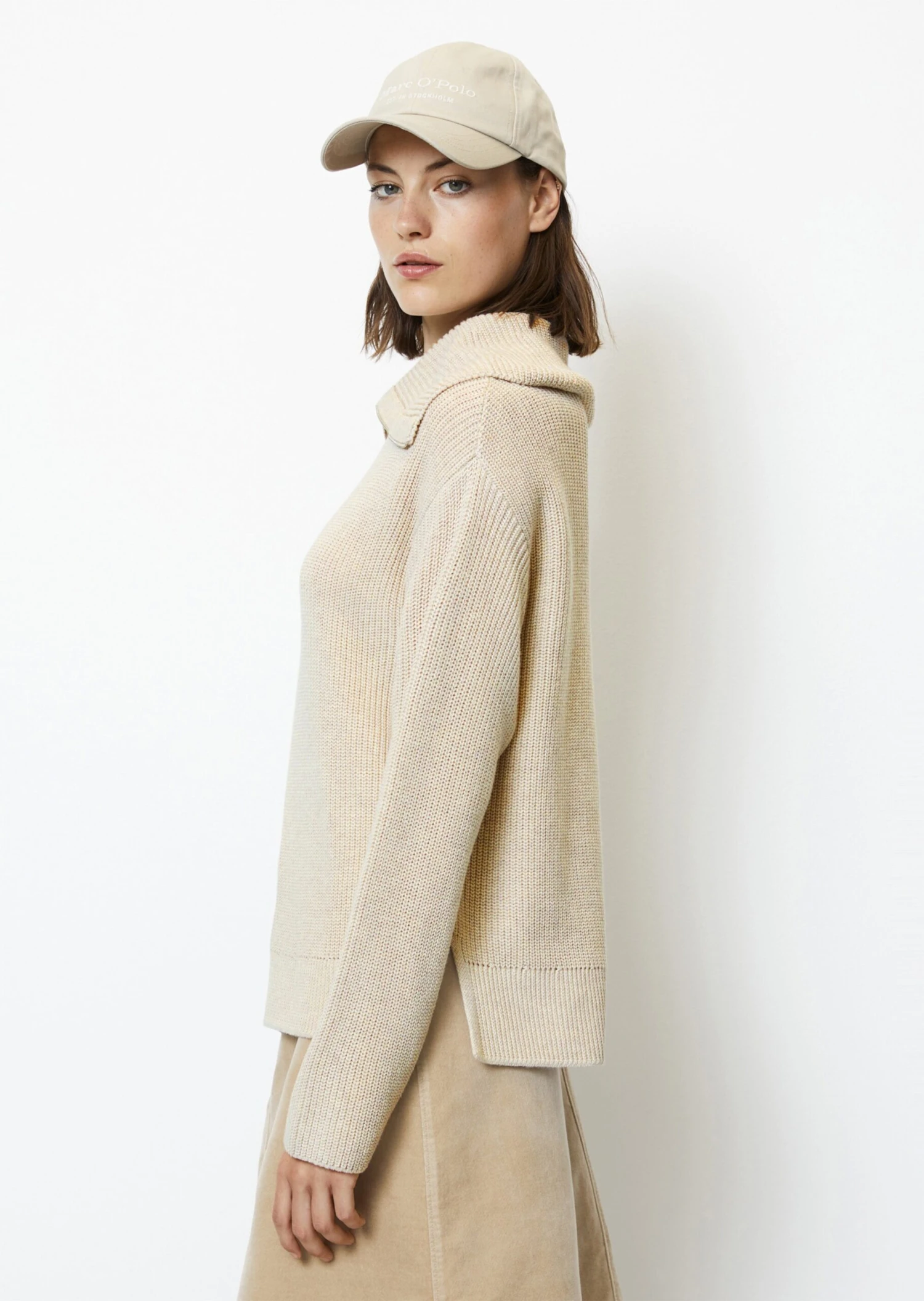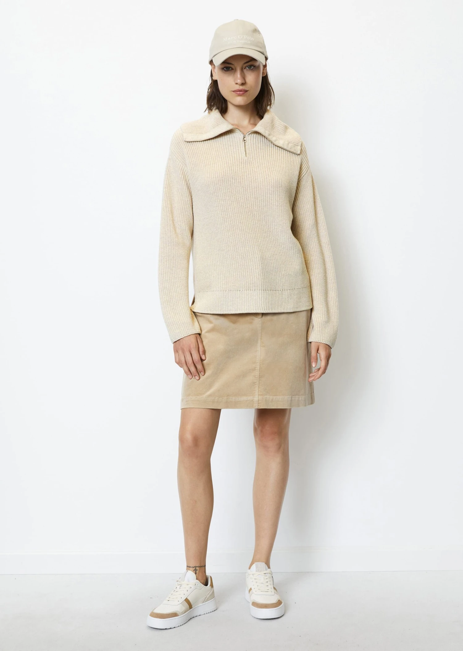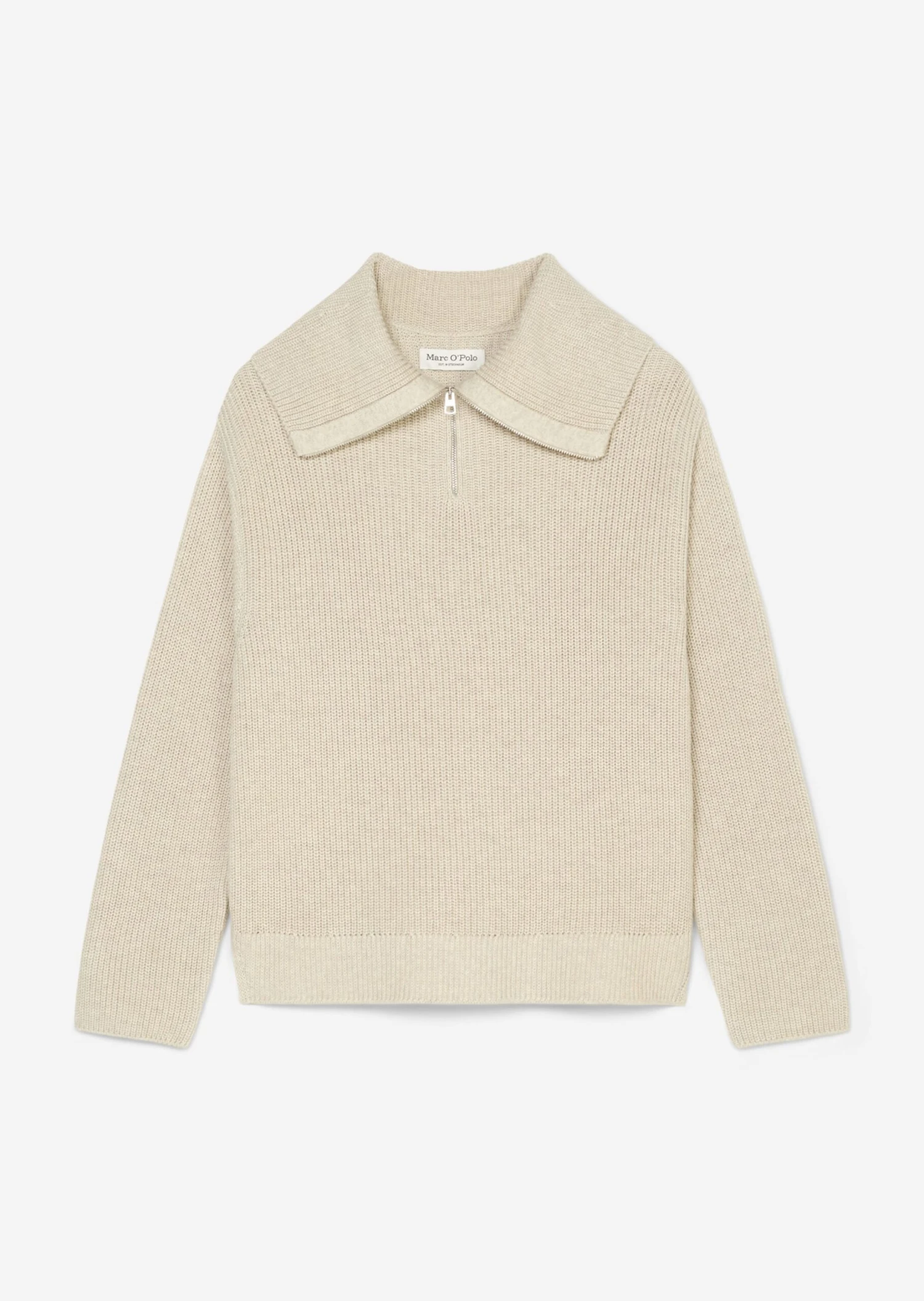 Marc O’Polo Cropped Knitted Zip-neck Jumper In A Loose Fit In A Cool Mix Of Textures And Colours