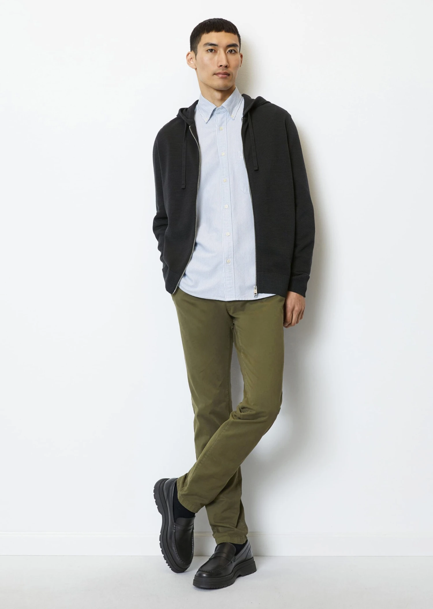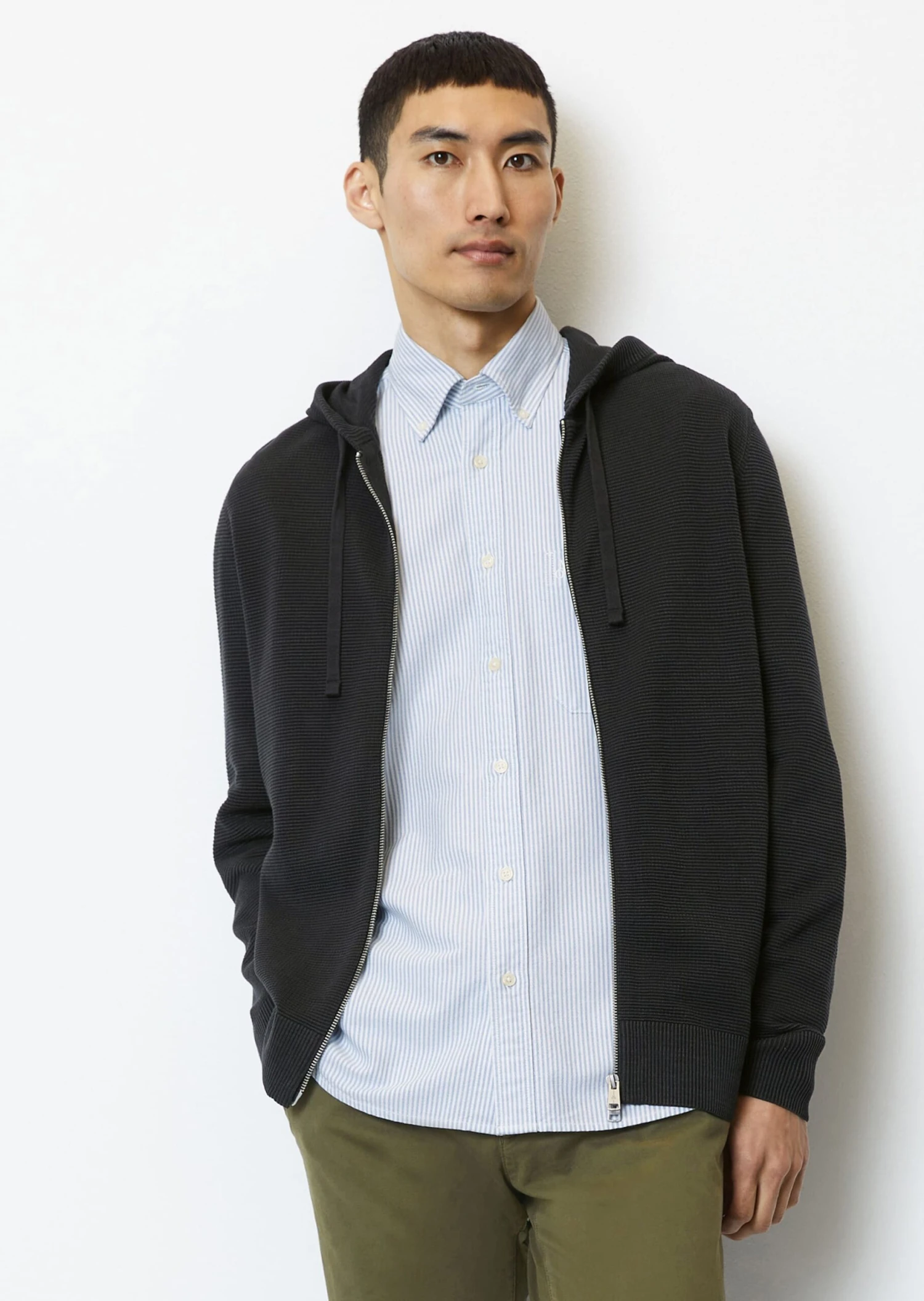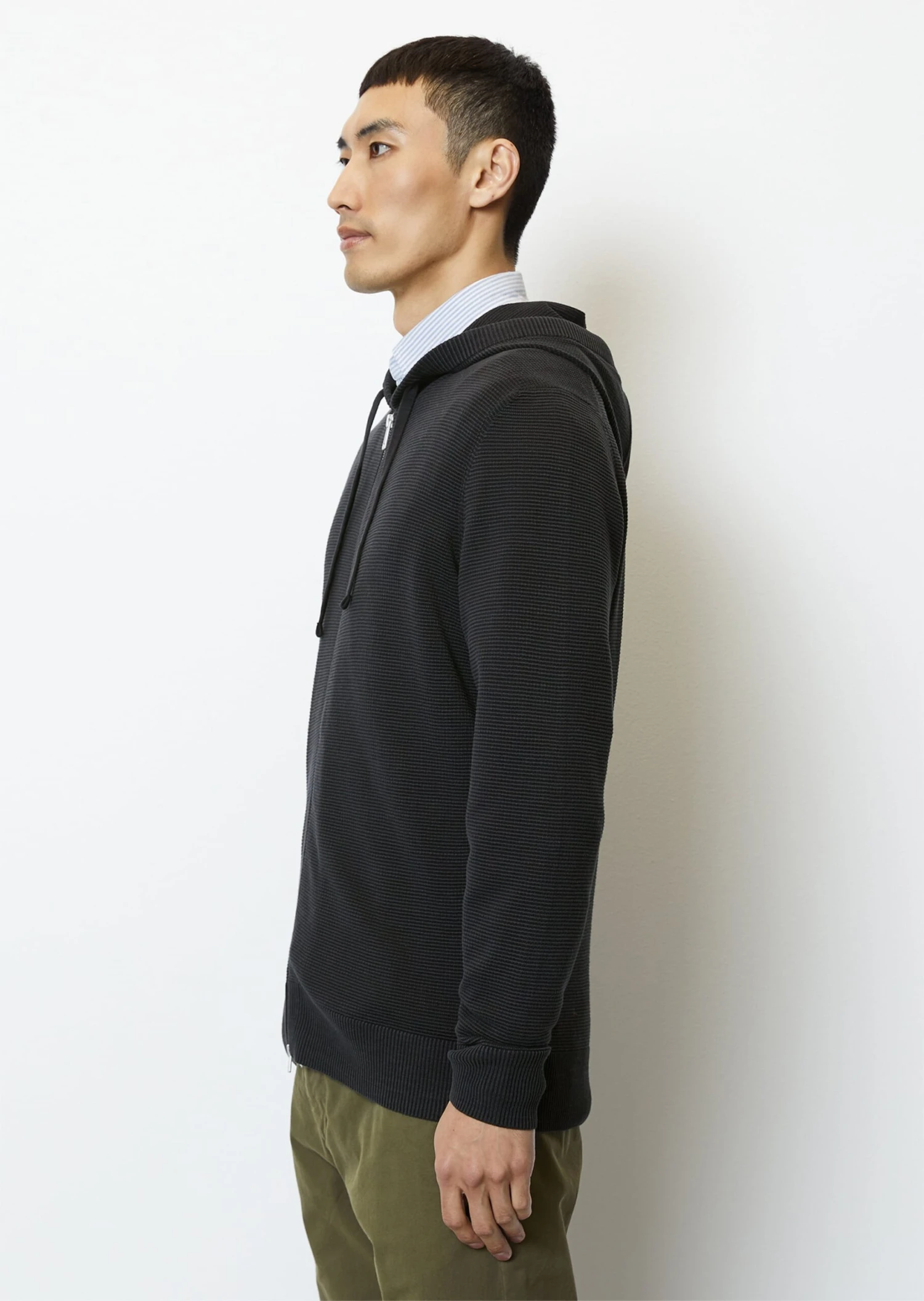 Jacket alternative in the transitional season and a fixed component of the winter wardrobe: the high-quality zip cardigan in regular fit with hood incl. drawstring and cord, which adds a sporty touch to any outfit. With distinctive two-way zip fastening and ribbed cuffs and straight hem. The material: knitted from yarn-dyed organic cotton with cross-ribbed ottoman structure. Pre-washed with enzymes for a particularly soft feel.
