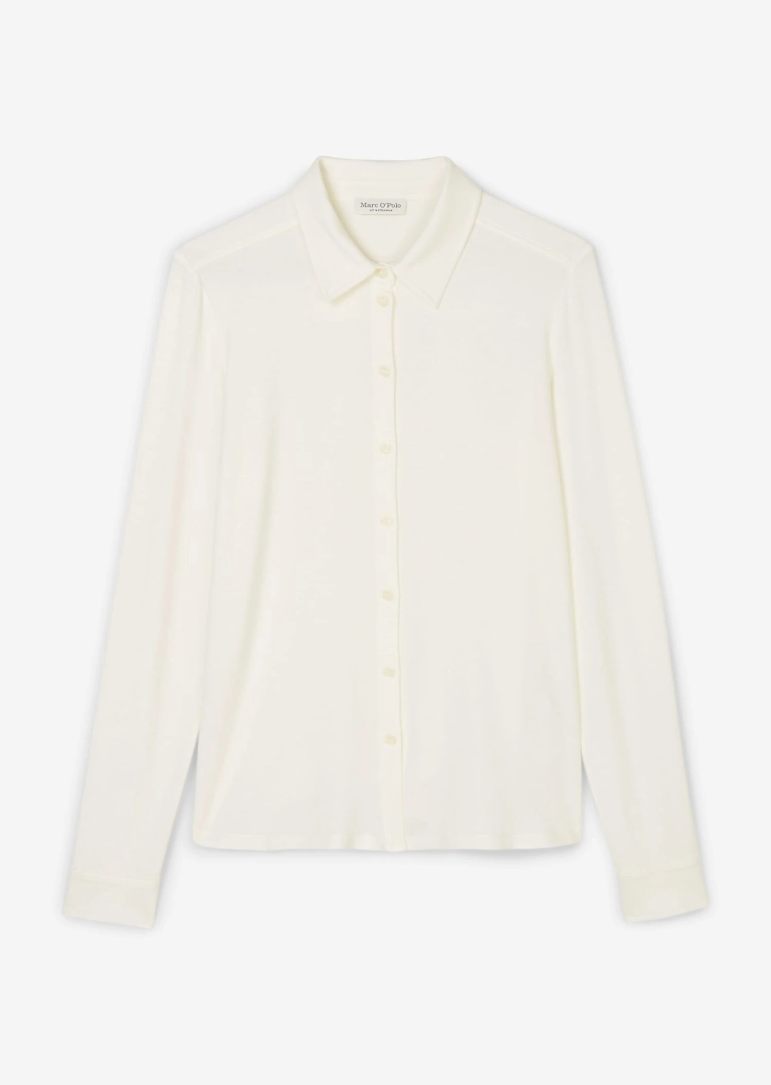Comfy and elegant trend: soft jersey blouse made of high-quality stretchy blended viscose (ECOVERO™ by LENZING™). Comfortable, regular fit with a classic Kent collar, full-length button placket, narrow sleeves with cuffs and a slightly rounded hemline. Smart casual look: combine with skinny jeans and trainers.