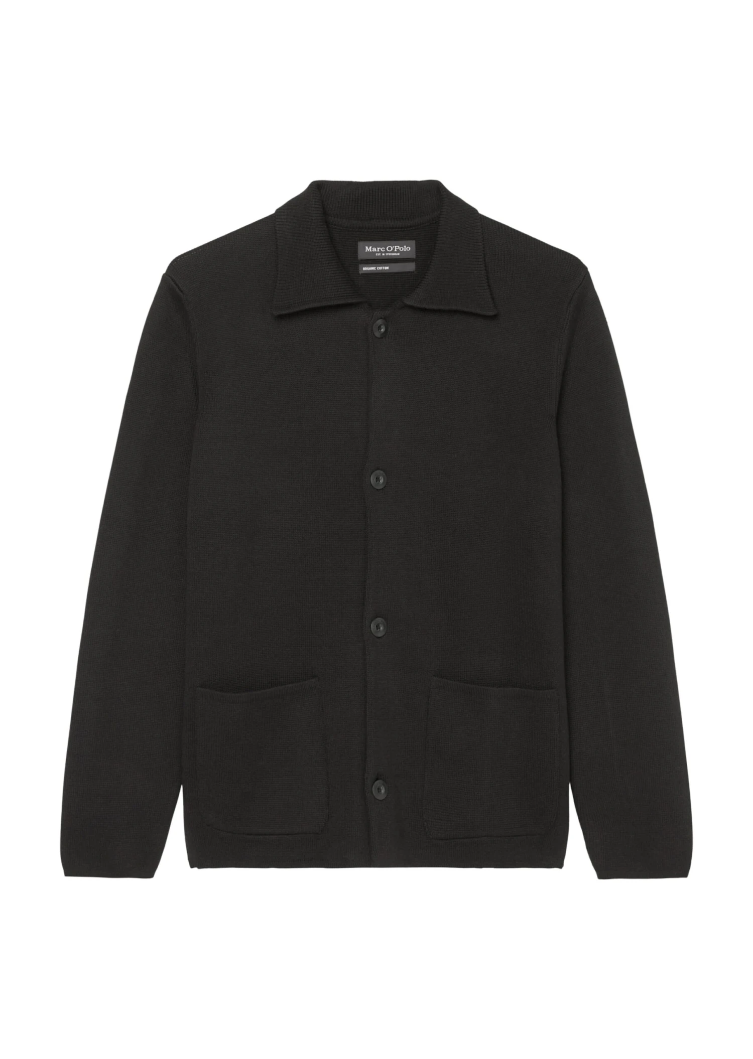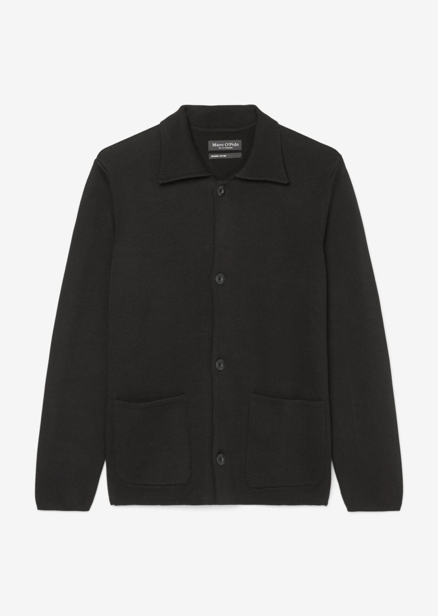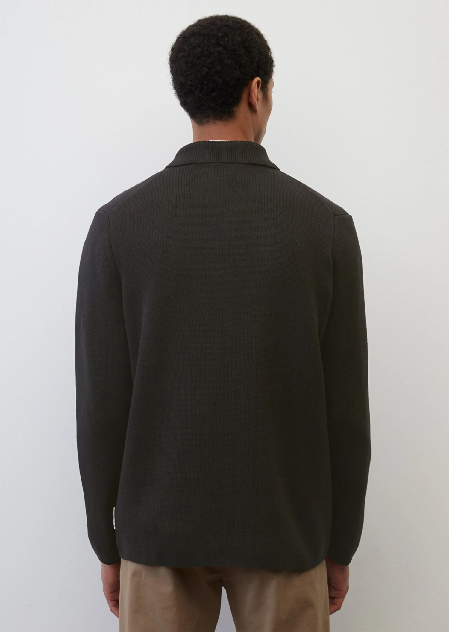 Smart and casual at the same time: this high-quality cardigan with a Milano texture can be styled with a variety of outfits. It is made of GOTS-certified organic cotton and comes in a masculine regular fit. The cardigan also features a flat knit collar, dropped shoulders, a full-length button placket with logo buttons in a contrasting collar and side patch pockets.