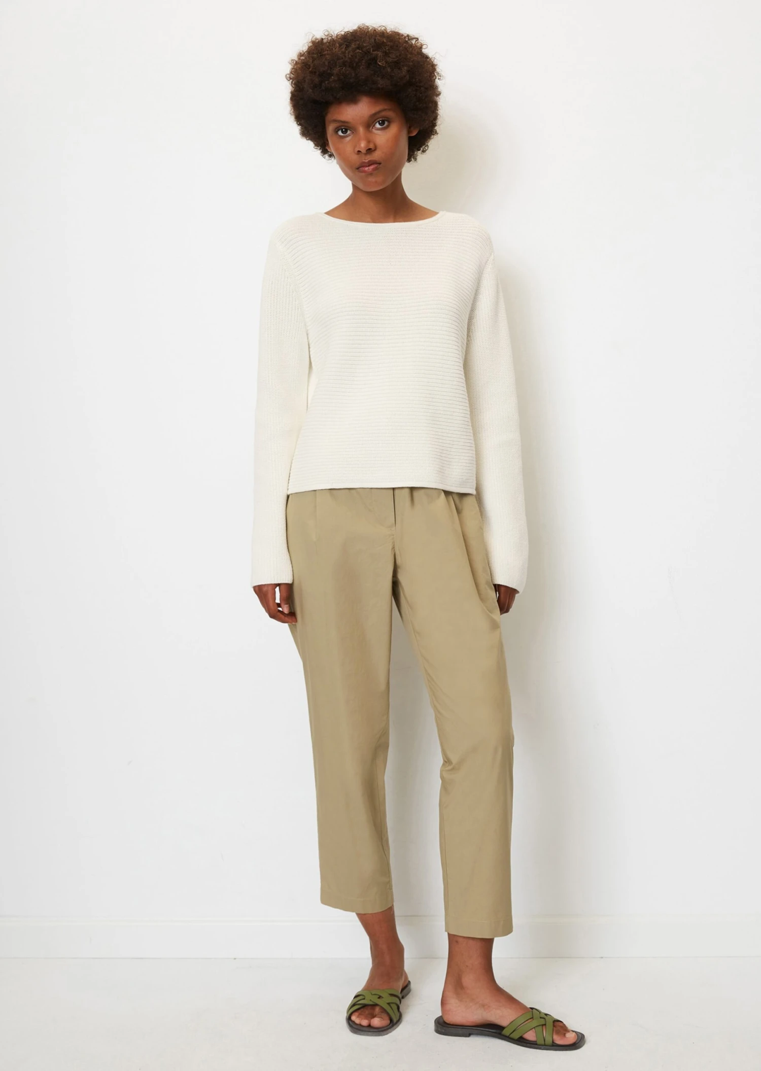 Marc O’Polo Bateau Neck Cropped Jumper With Statement Sleeves Made From Heavy Weight Organic Cotton
