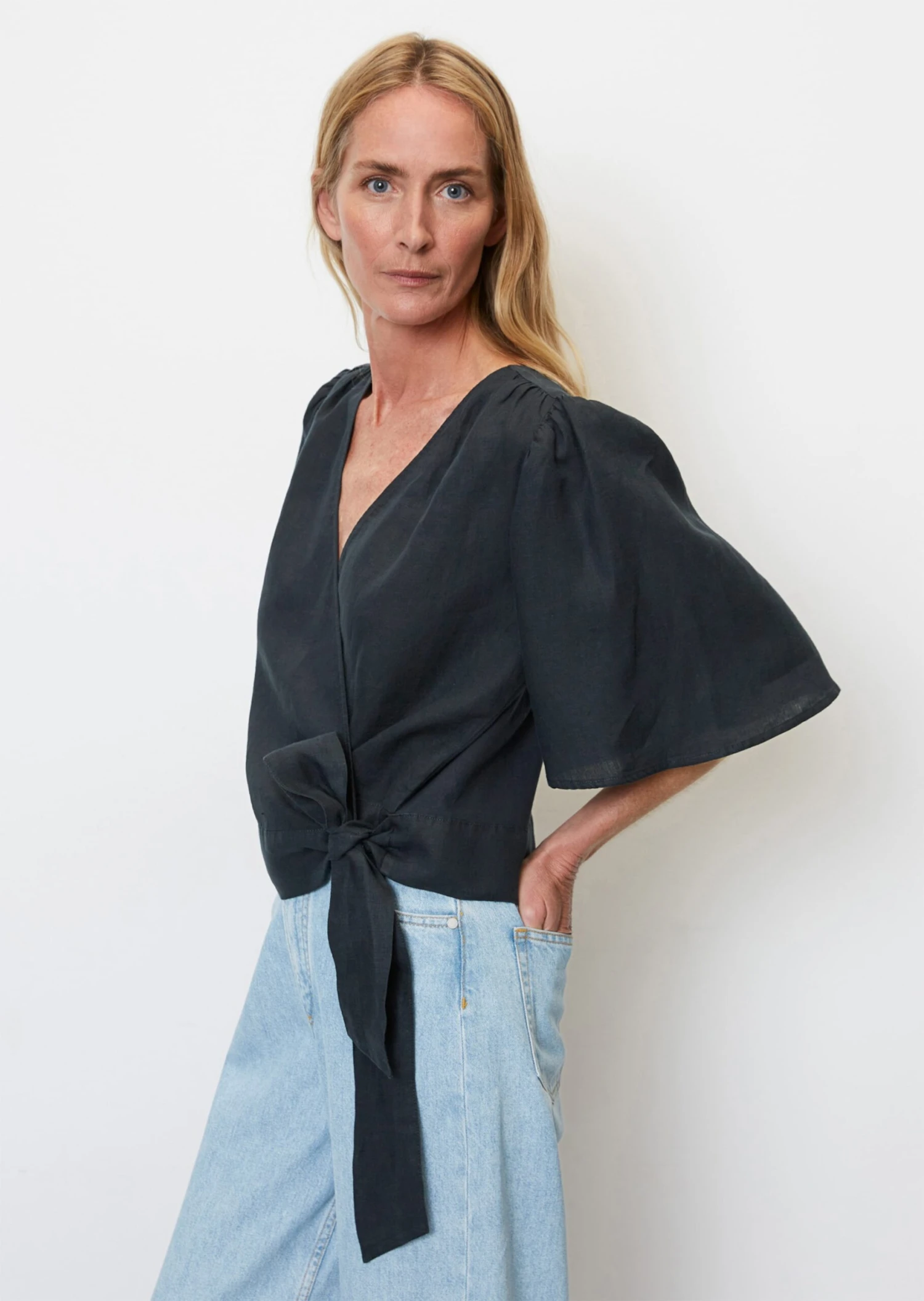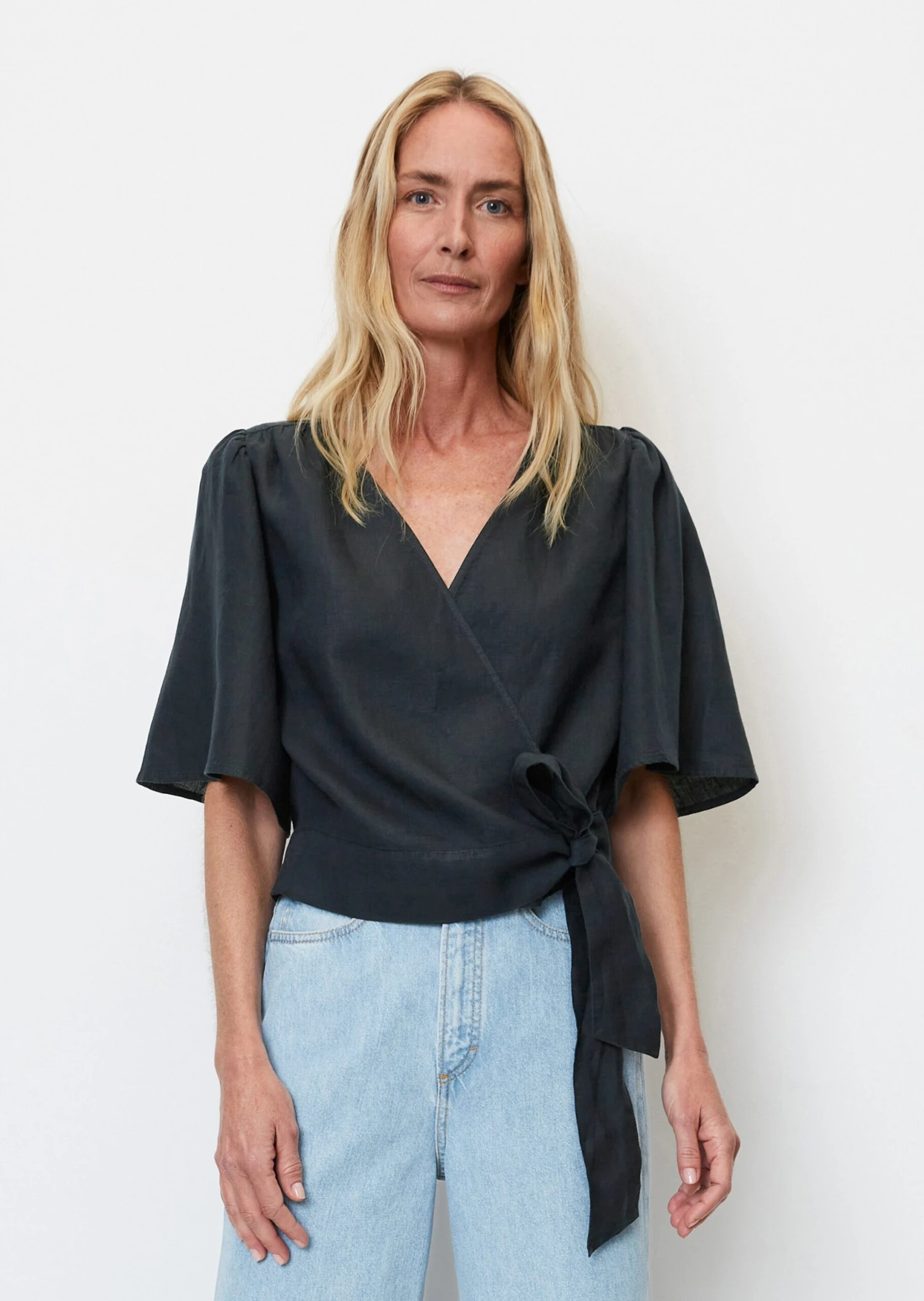 Marc O’Polo Linen Wrap Blouse In A Mix Of Materials