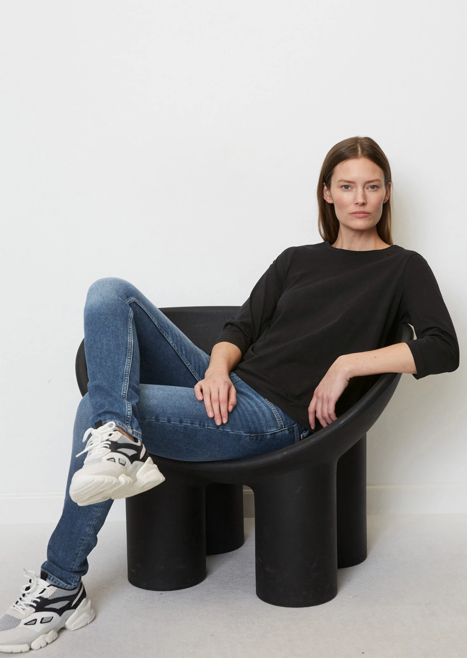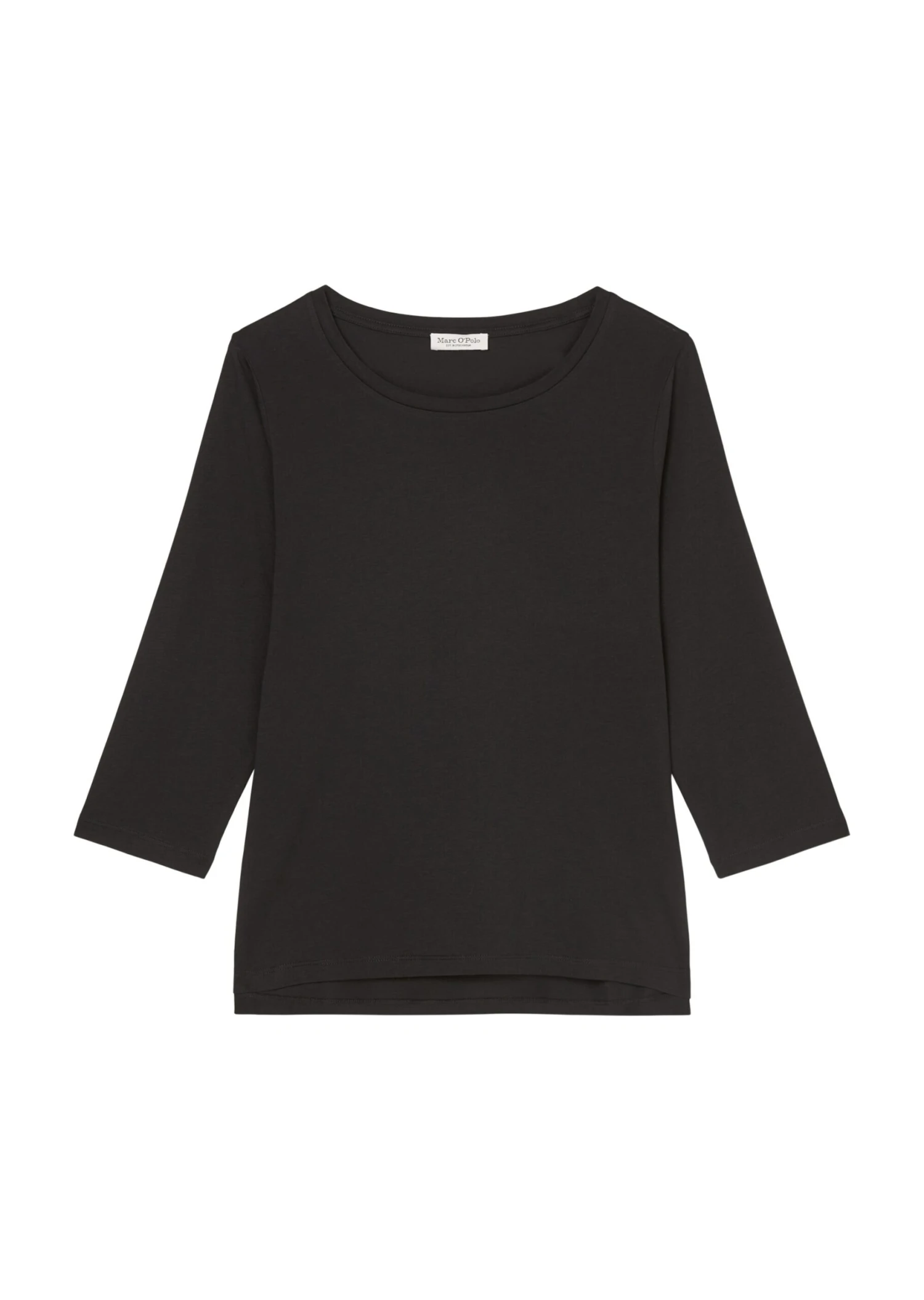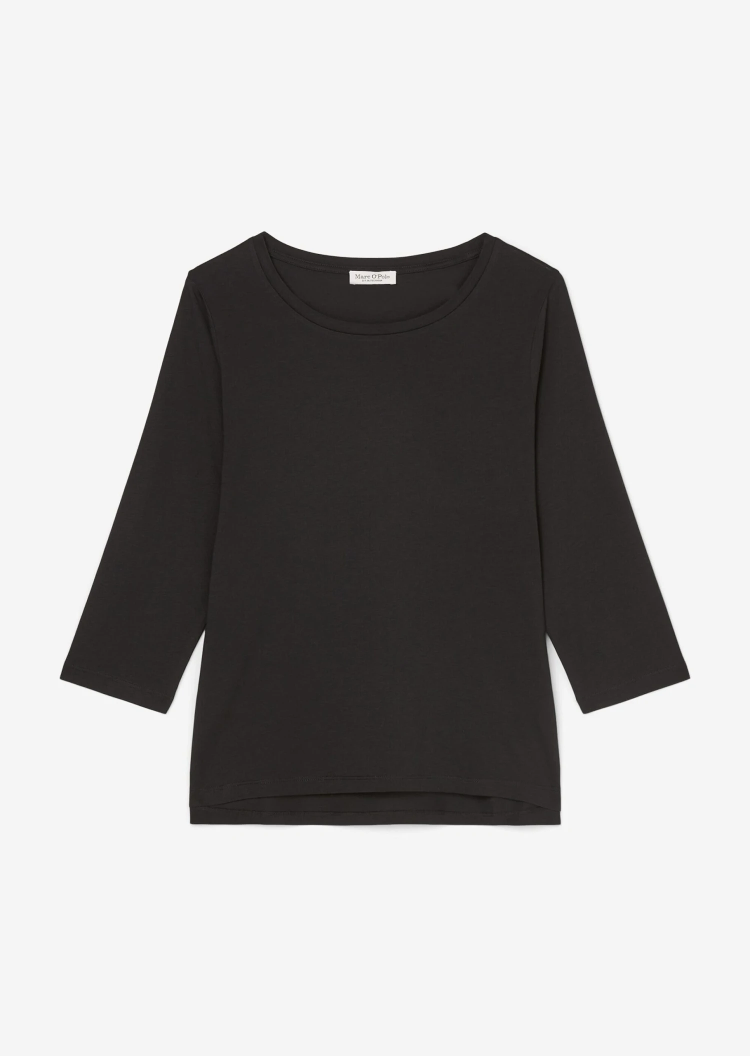Classic long sleeve top with a trendy update. This piece comes in a comfy, regular fit with a feminine bateau neckline and casual, cropped sleeves. It is made of super soft single jersey fabric composed of pure organic cotton. It has a straight hemline at the front and a slightly longer, rounded hem at the back.