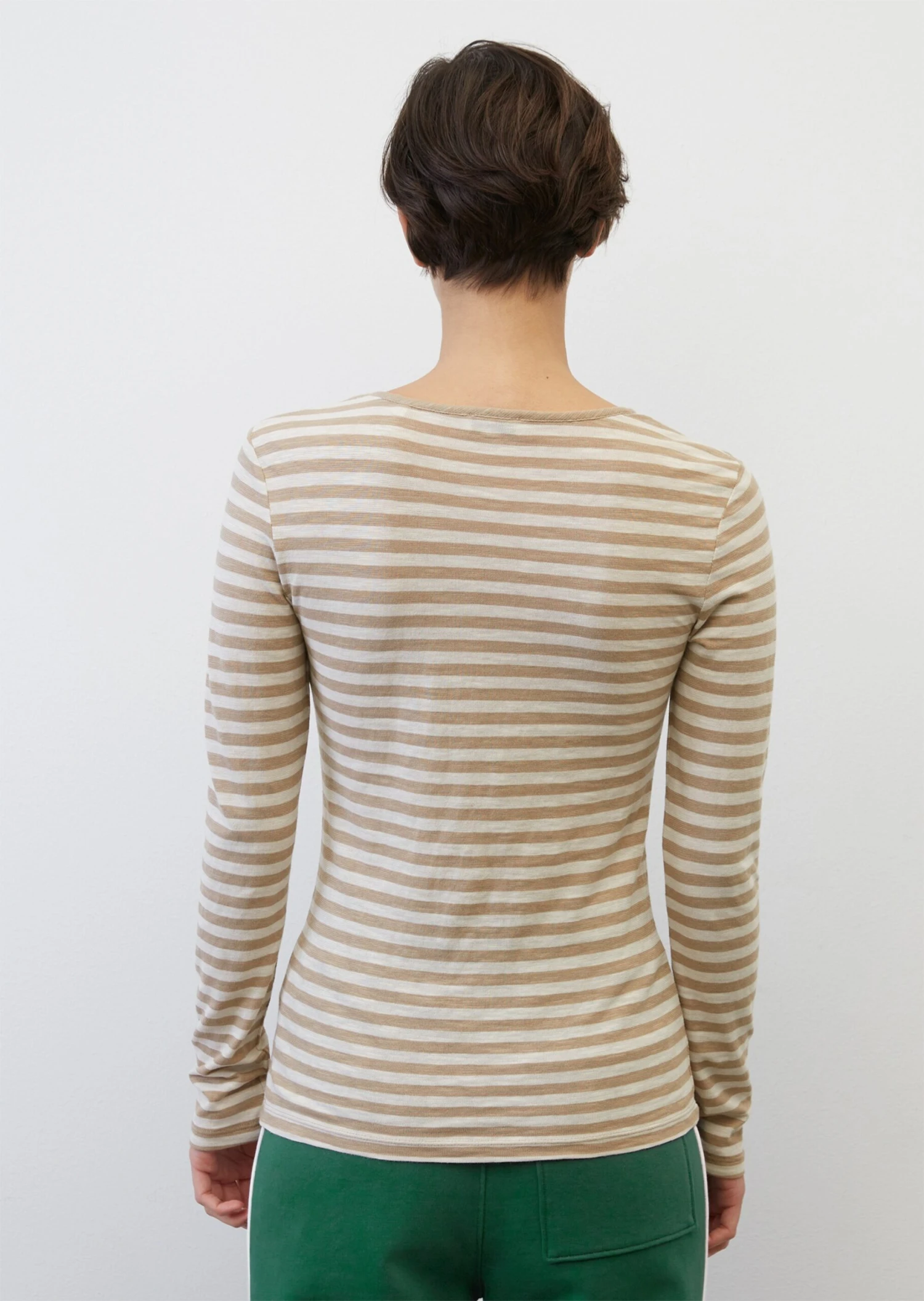 Marc O’Polo Long Sleeve Top With Stripes In Organic Cotton Slub Jersey