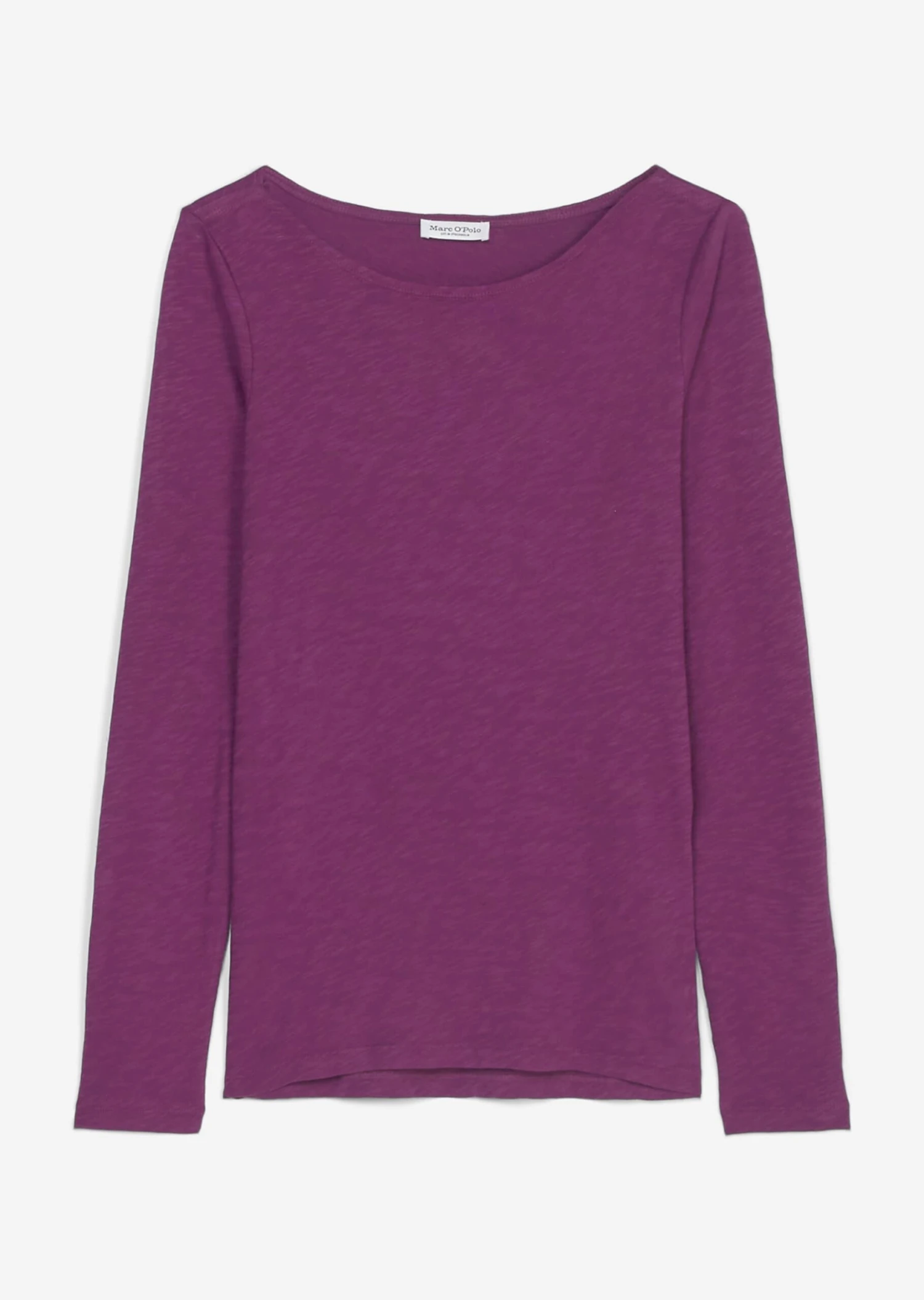 Marc O’Polo Bateau Neck Long Sleeve Top, Regular Fit In A Lightweight Slub Jersey Fabric