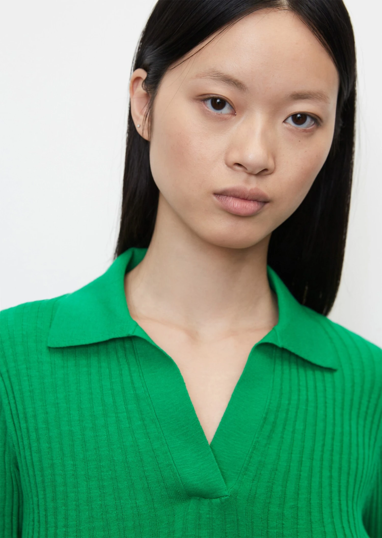 This fully fashioned bodycon dress with a casual V-neckline and a polo collar detail is an elegant knitwear piece for spring and summer. The feminine piece is made of a high-quality cotton and linen blend with wide ribs and has distinctive fully fashioned details at hip and waist height. This fine knit dress is comfortable, close-fitting and has two high slits on the side seams. Styling tip for a cool look: pair with chunky sandals or bulky trainers.