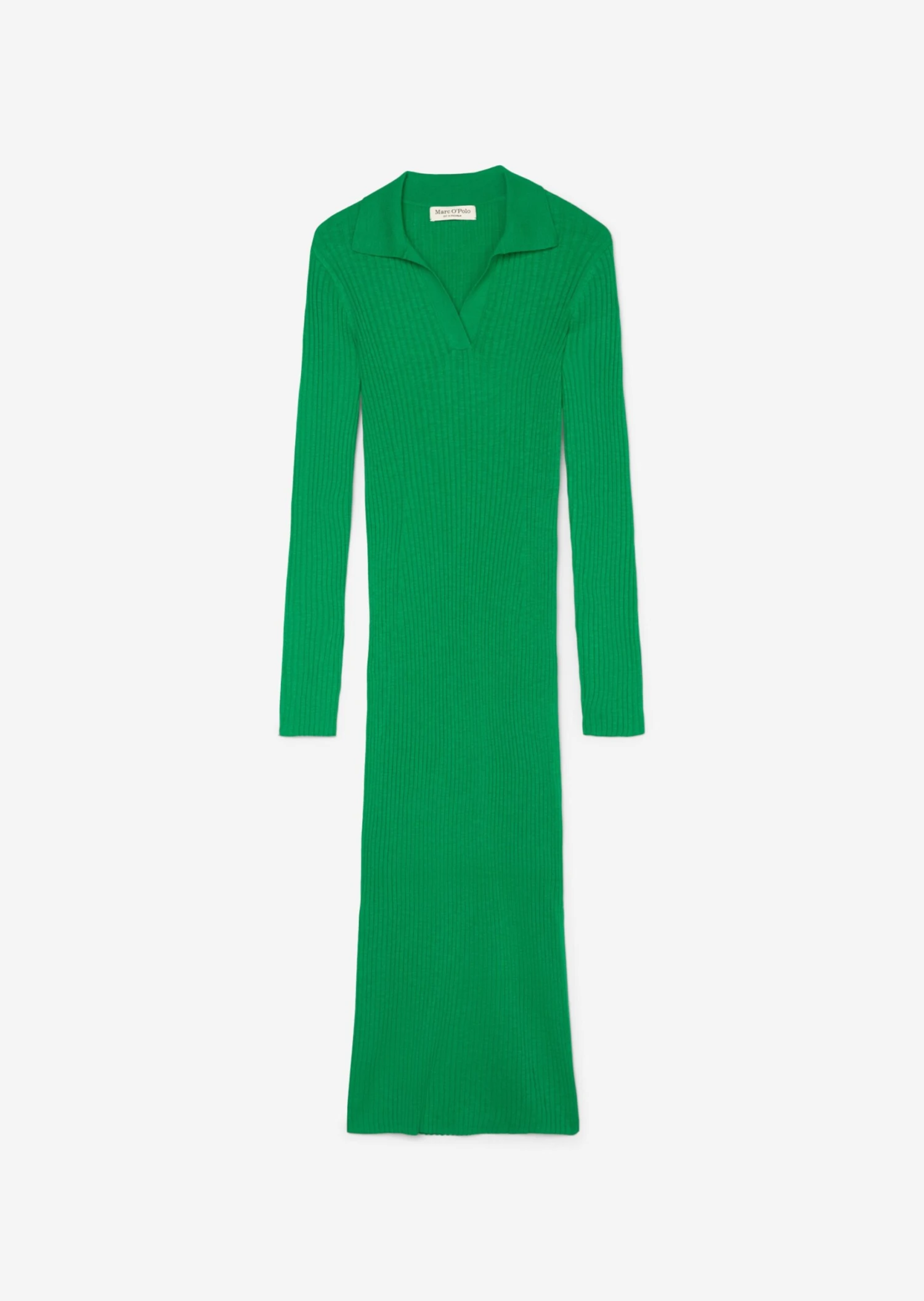 Marc O’Polo Rib Knit Dress With A Polo Collar Made Of An Organic Cotton And Linen Blend