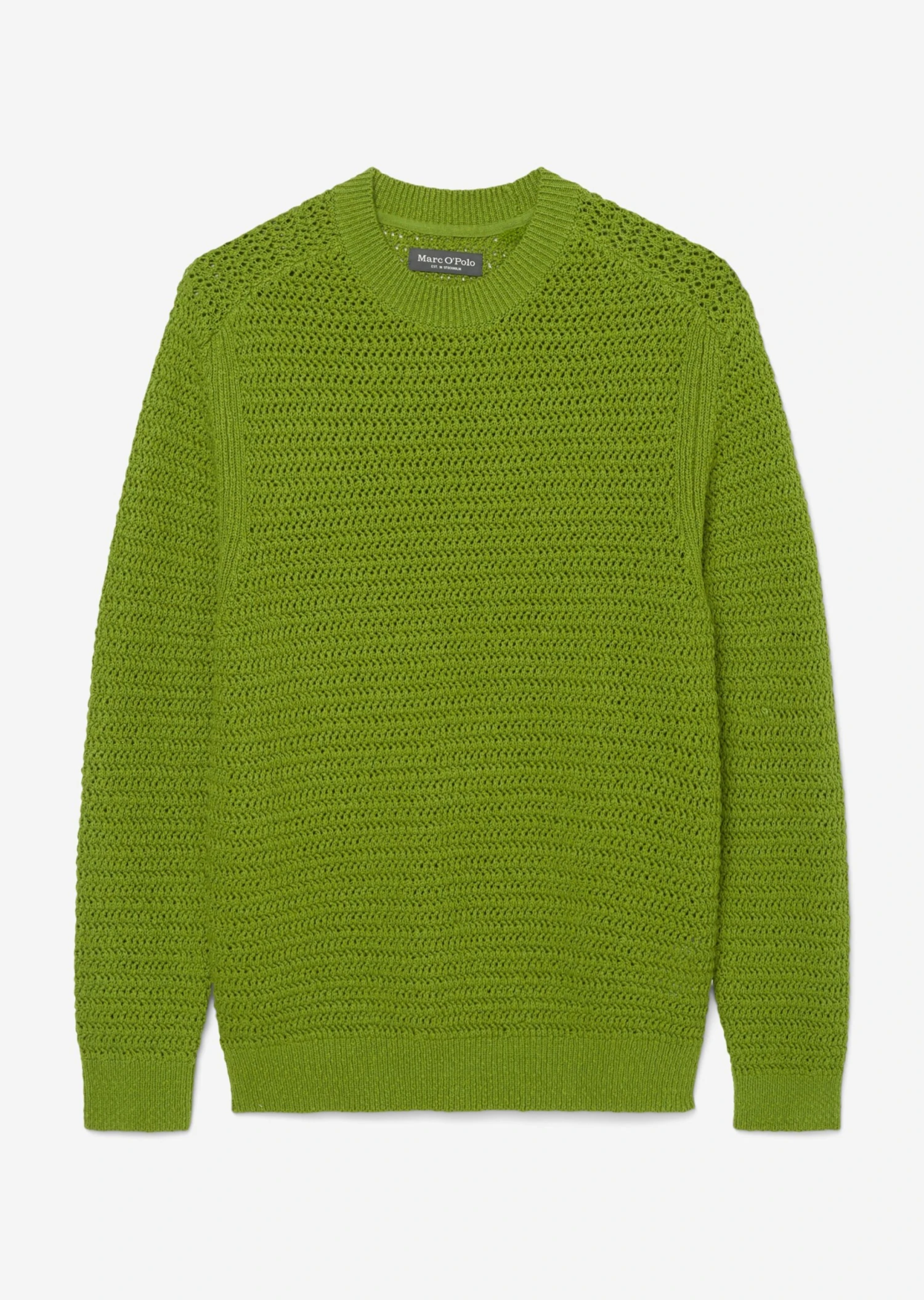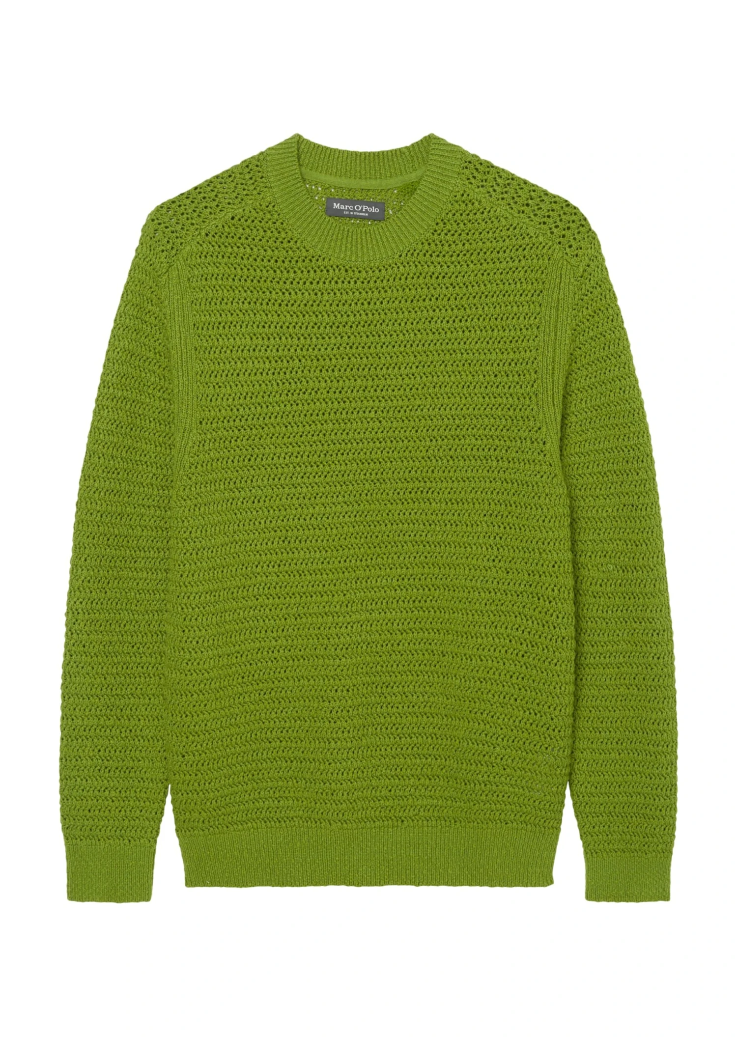 Marc O’Polo Openwork Knit Jumper In A Slim Fit Made Of An Organic Cotton And Linen Blend