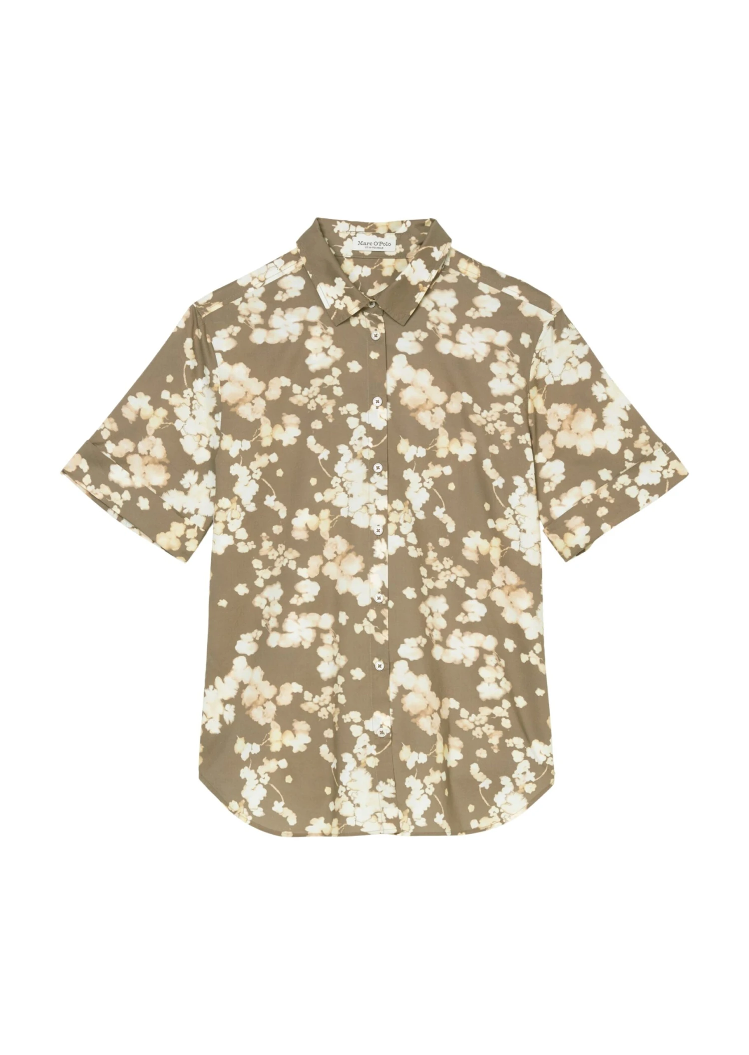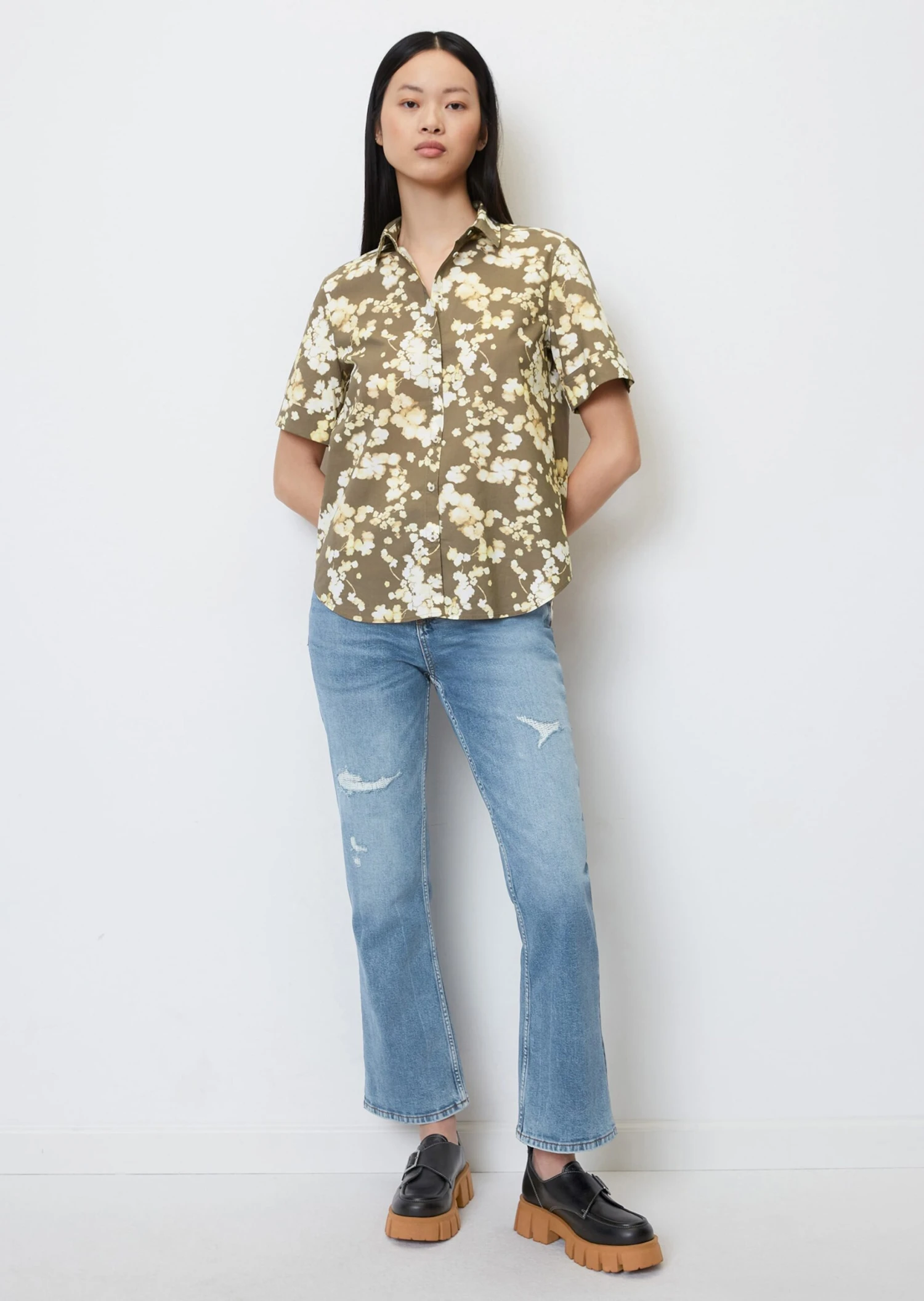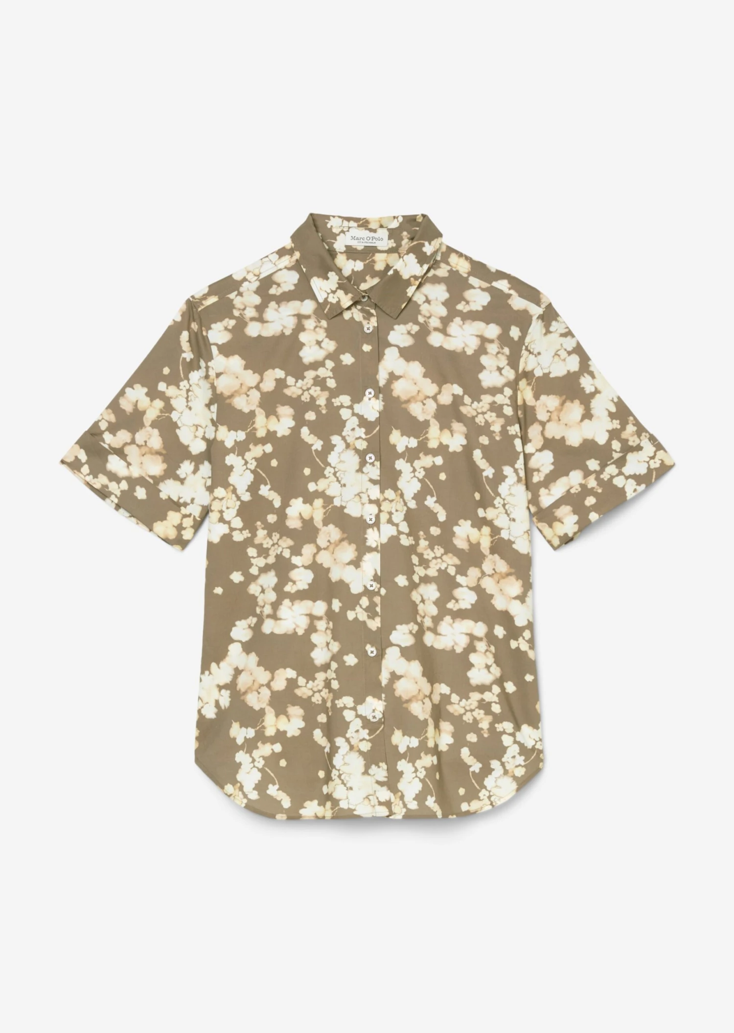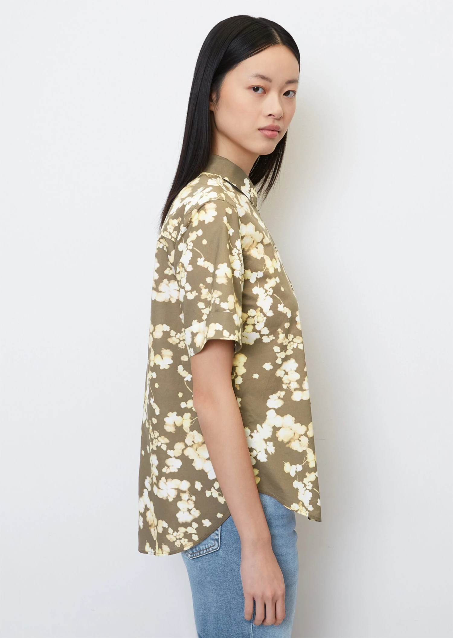 Marc O’Polo Short-sleeved Blouse With All-over Print In Paper Touch Poplin