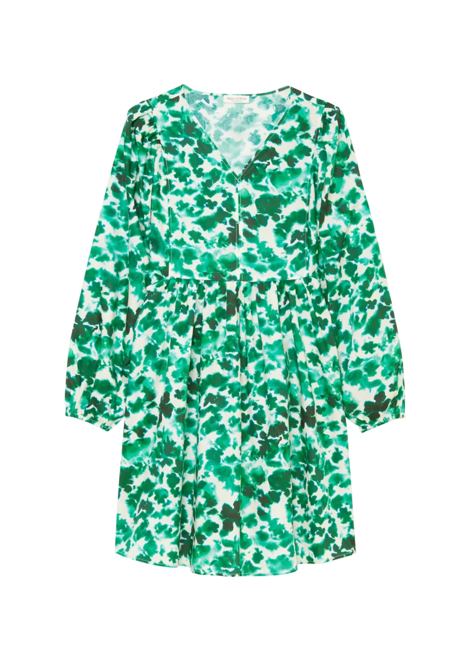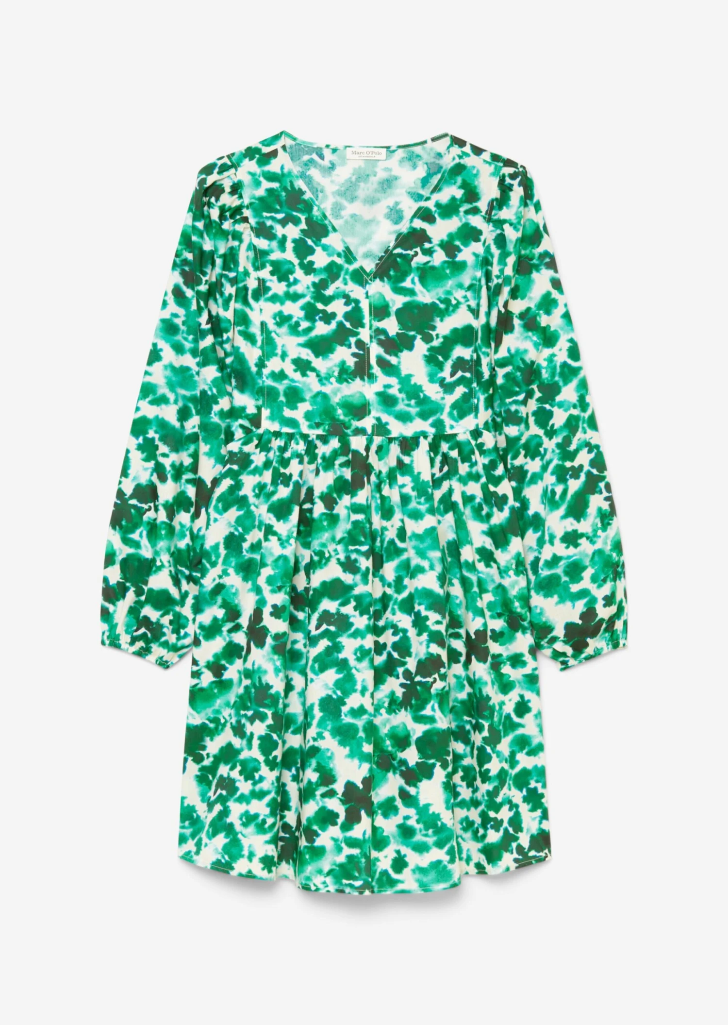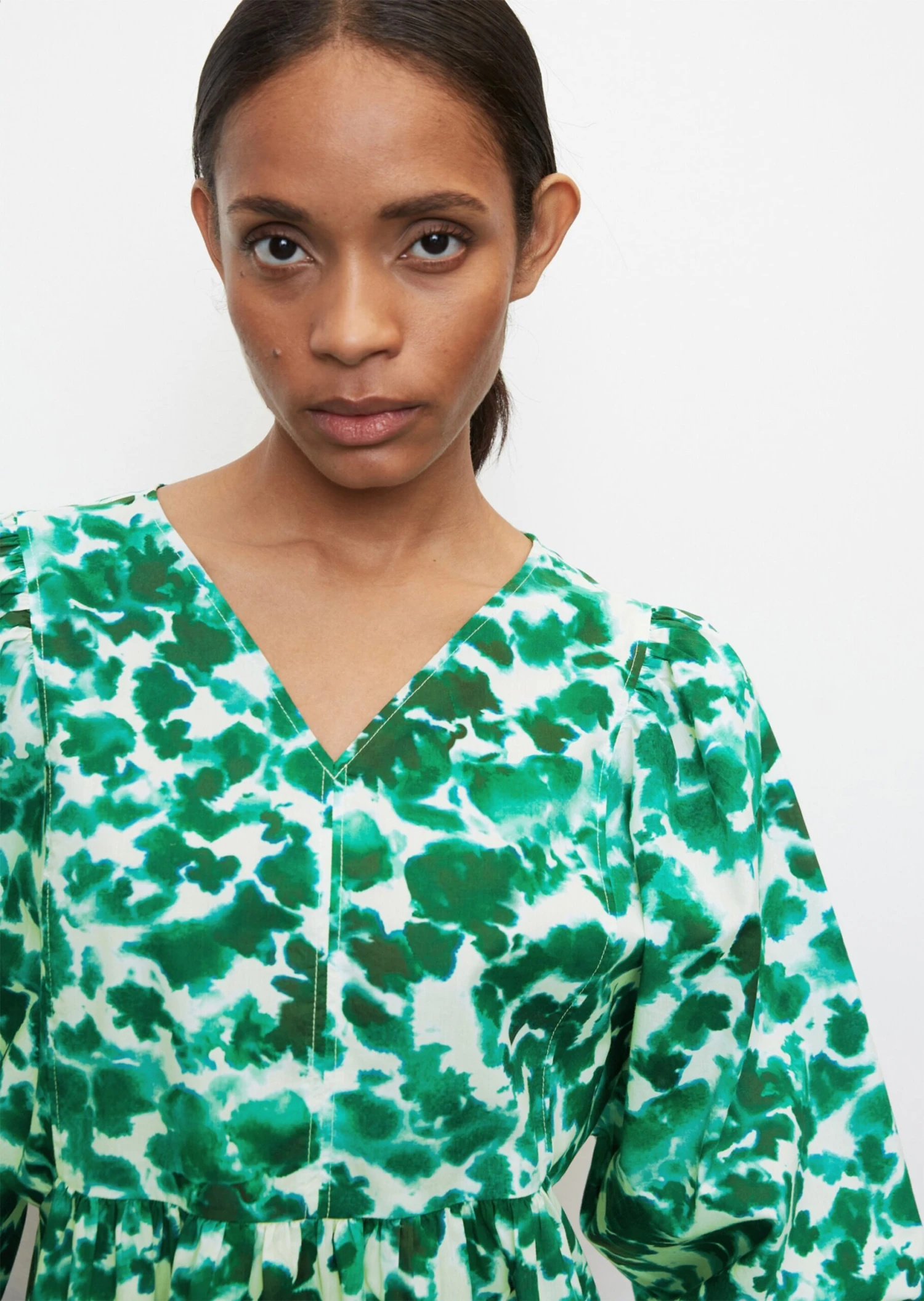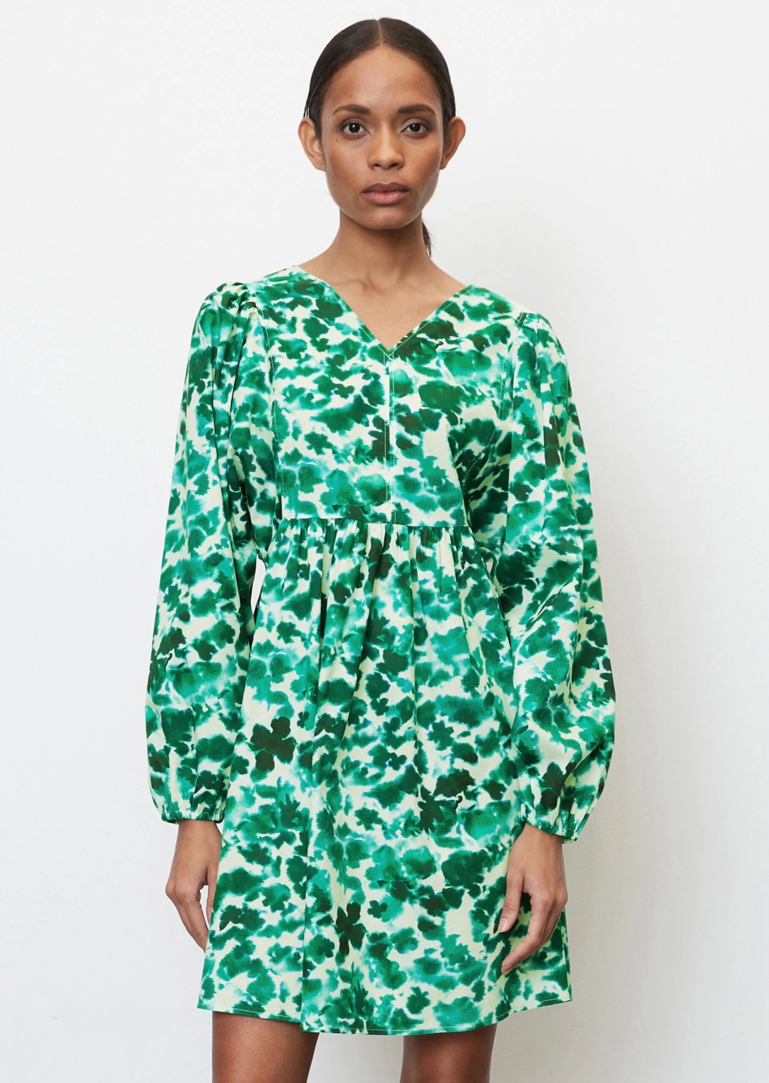 Marc O’Polo Short V-neck Dress With Voluminous Sleeves Made Of An Organic Cotton/lyocell Blend