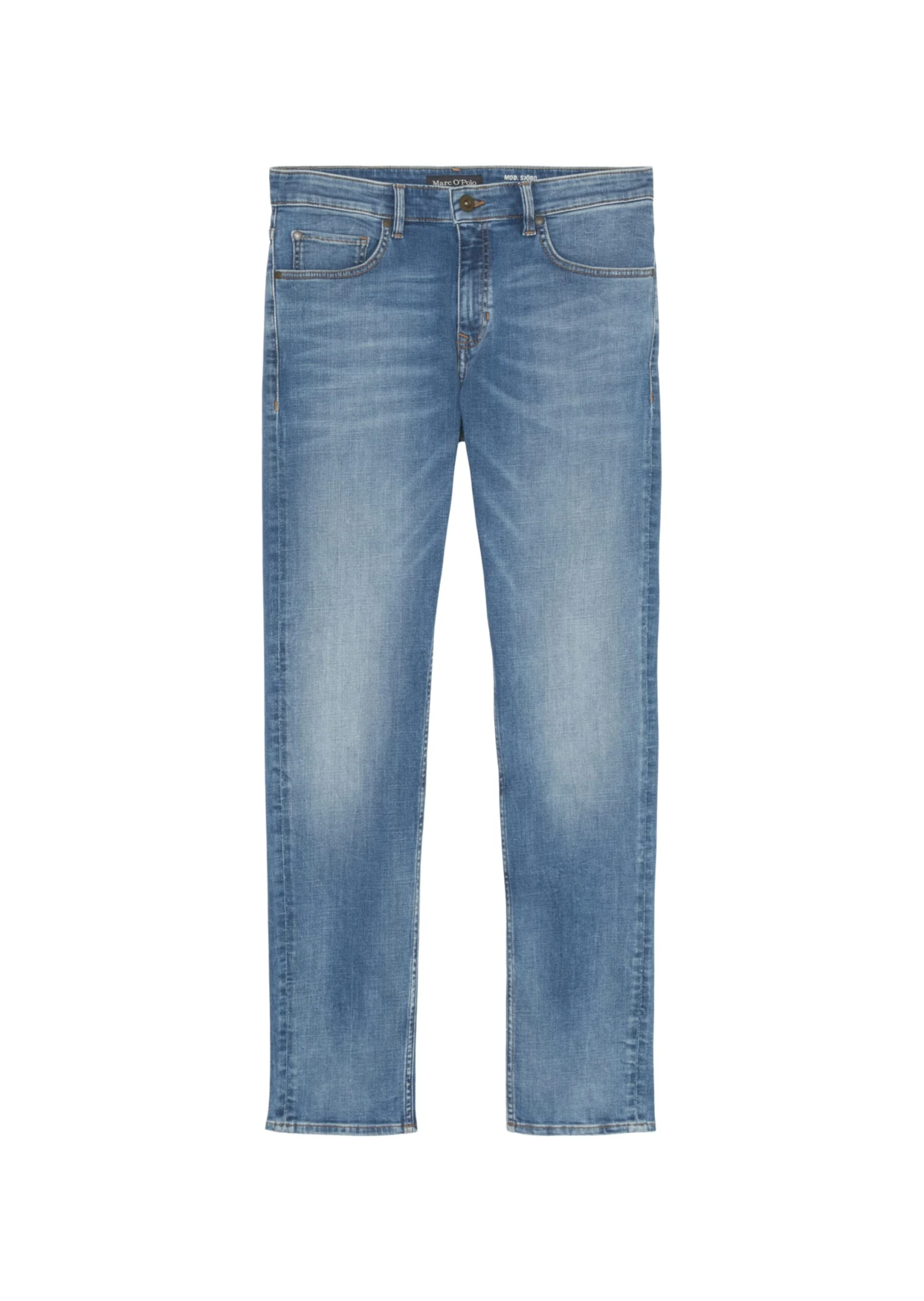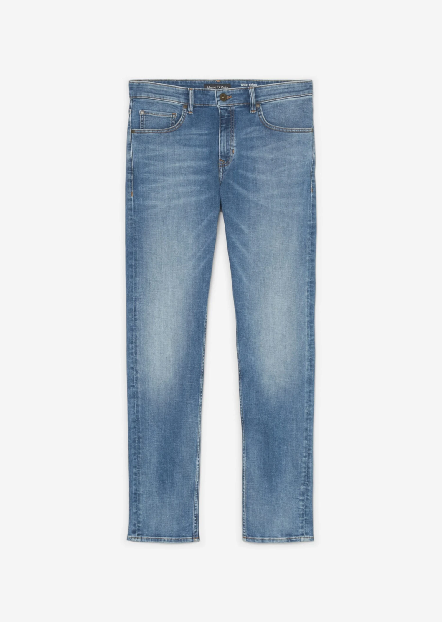 OUR CLEANEST JEANS PROJECT – the jeans – model SJÖBO shaped – made of organic cotton with spandex content is produced with high standards. Less energy and less water consumption. In casual, slightly irregular crosshatch denim quality – a classic five-pocket style. Back pockets, welt pockets and coin pocket are set off with contrasting decorative stitching. The low waistband with shaped leg is perfect for masculine looks. The waistband features a classy logo label in genuine leather at the back.