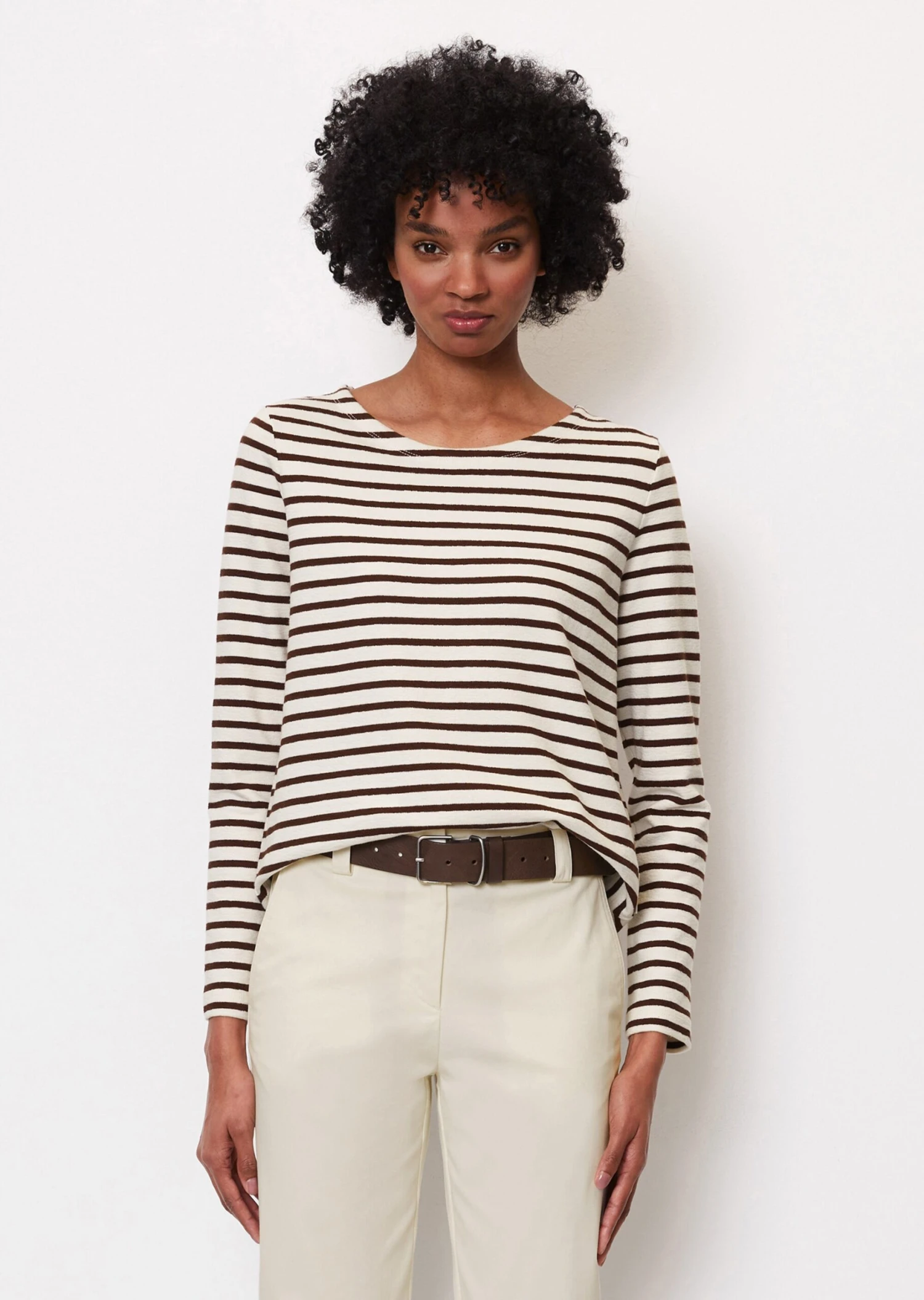 Marc O’Polo Striped Long Sleeve Heavy Slub Jersey Top In A Regular Fit Made Of Organic Cotton