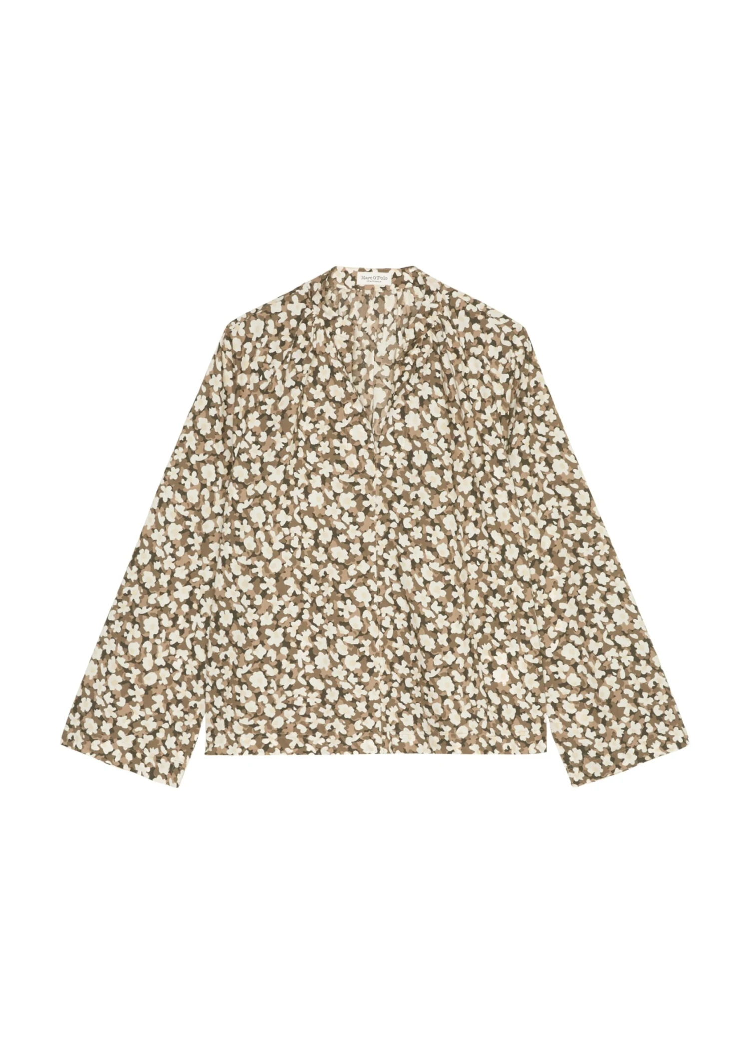 Marc O’Polo Long Sleeve Blouse In A Relaxed Fit With An All-over Print Made Of Paper Touch Poplin